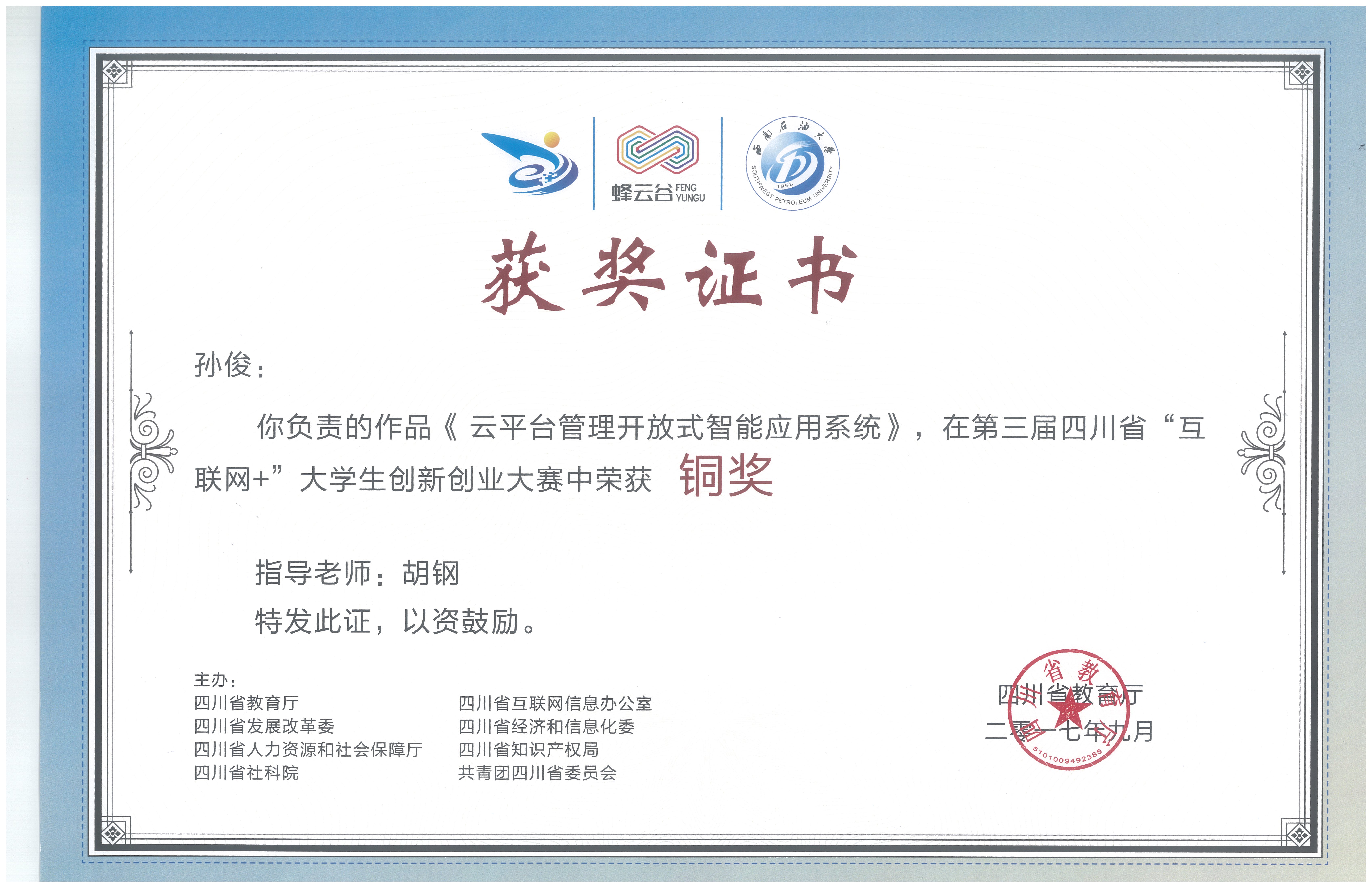 云平台管理开放式智能应用系统-省铜奖
