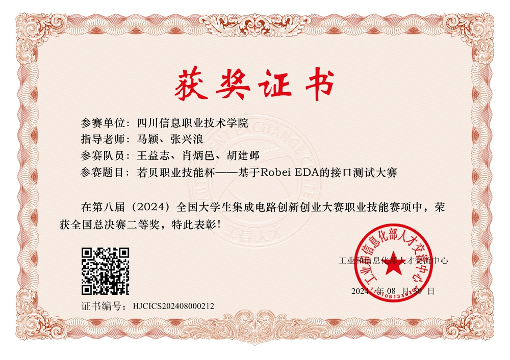 第八届(2024)全国大学生集成电路创新创业大赛职业技能赛项全国总决赛二等奖