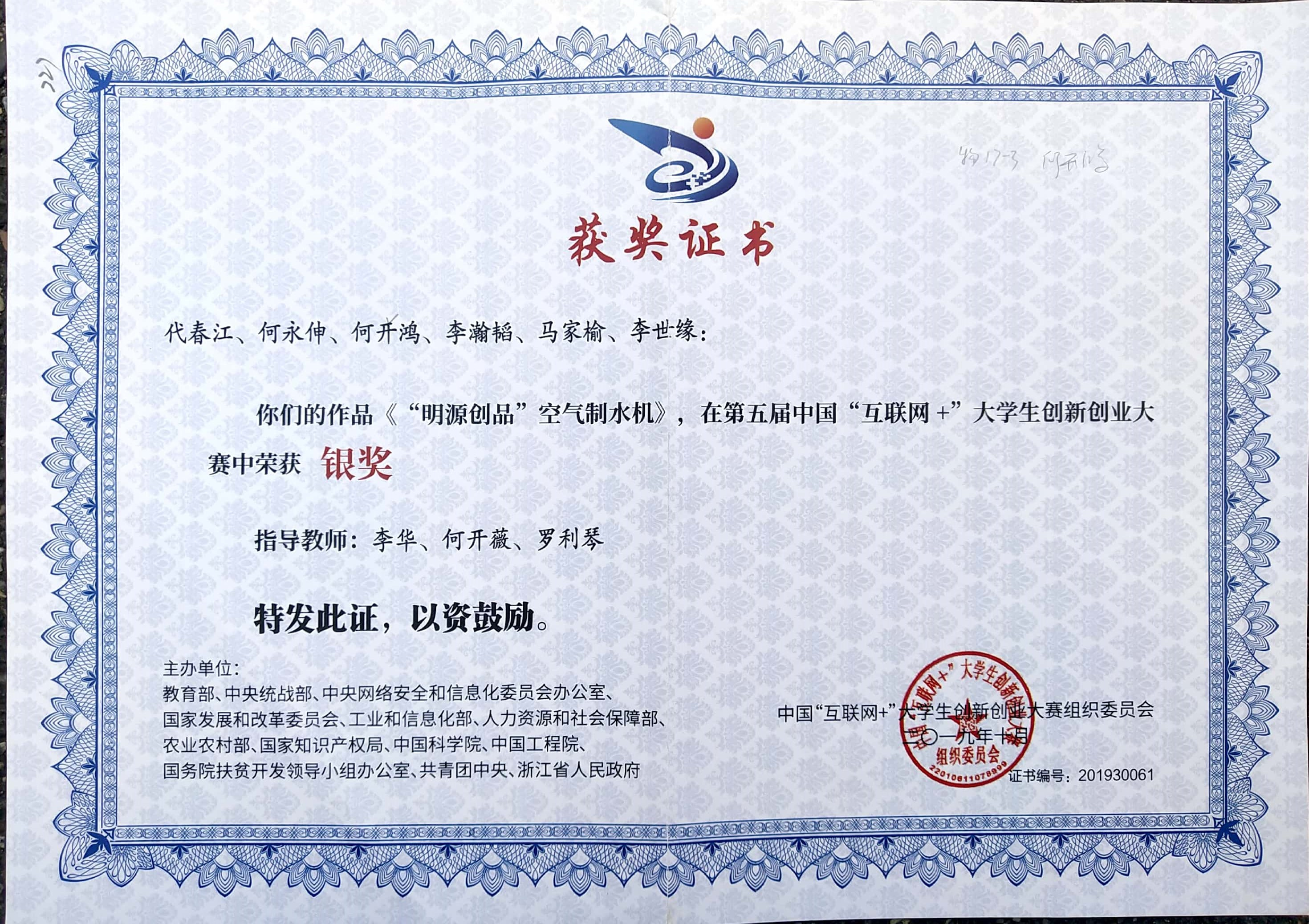 第五届中国“互联网 +”大学生创新创业大赛中荣获银奖